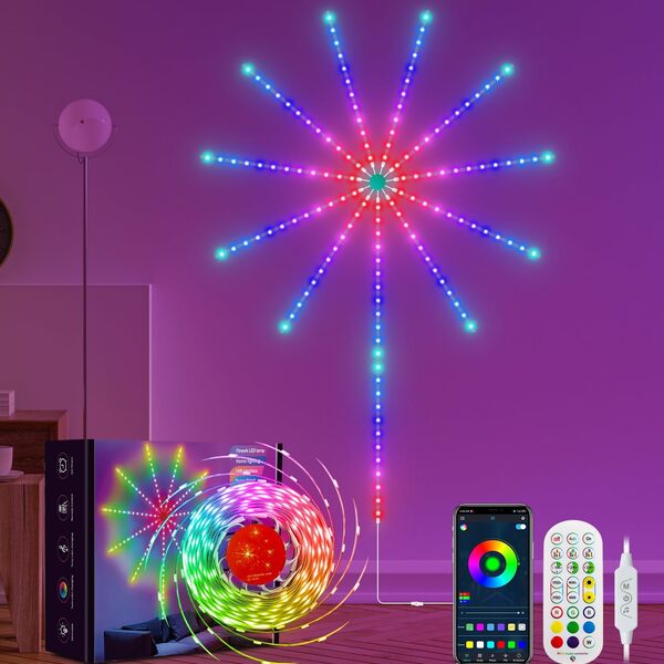 Osvijetlite svaki prostor s ovim raznobojnim vatrometnim svjetlima koja odmah čine vaše proslave posebnima i čarobnima. Podesite s tipkom ns kablu, daljinskim upravljačem ili aplikacijom. Sinkronizira se s glazbom za energičnu i živopisnu atmosferu!