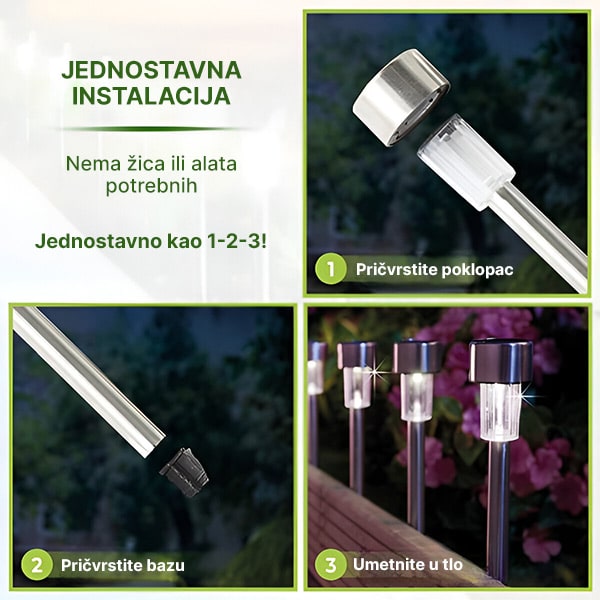 Iskusite jednostavno postavljanje bez potrebe za ožičenjem; jednostavno ih zabodite u zemlju i uživajte u trenutnom osvjetljenju.